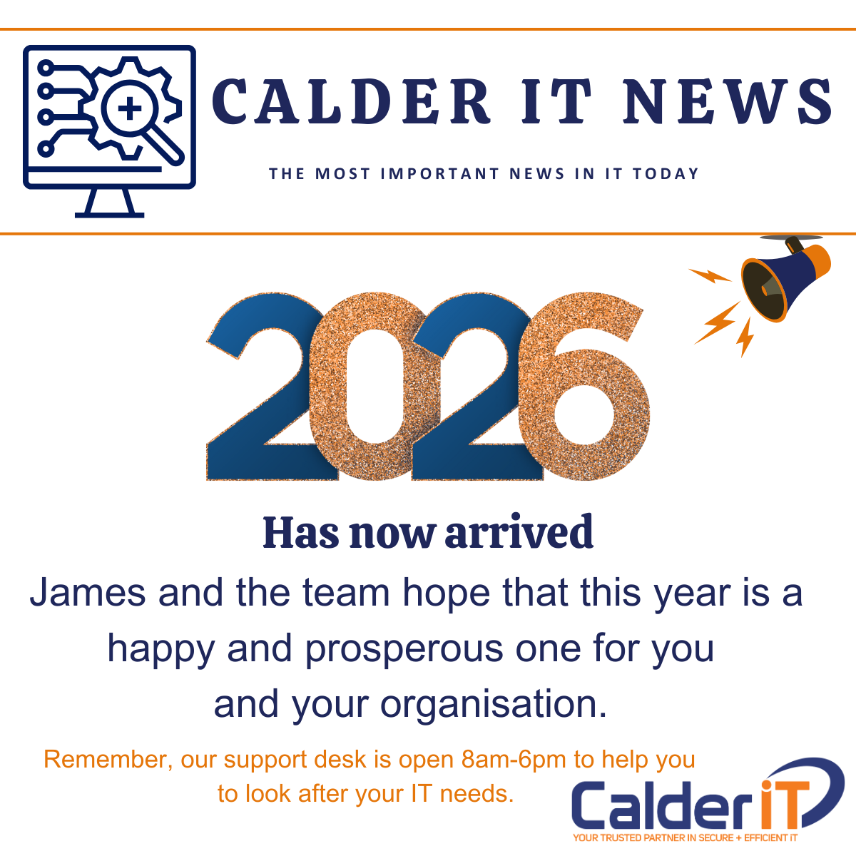 From James and the team; we wish you a very happy and prosperous 2026. Don’t forget, our support desk is open every week day 8am-6pm.